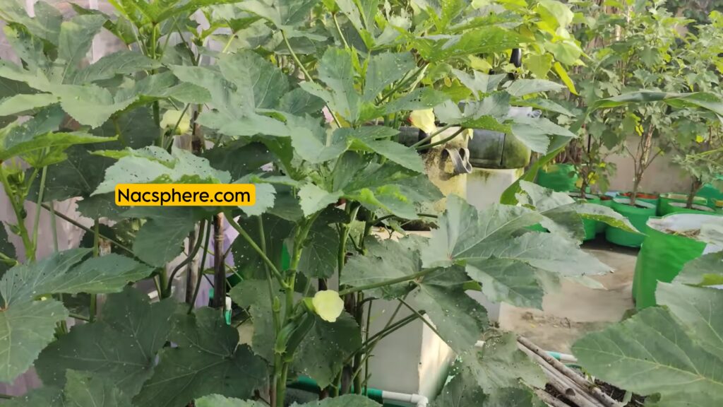एक और खास बात जब गो बैग में आप सब्जियां लगाएंगे तो ये बहुत अच्छी होगी जैसे आप देख रहे हैं यह भिंडी लगी हुई है और नीचे ये गो बैग है तो गो बैग में गार्डन बहुत सक्सेस होती है अगर आप अच्छे से करें
